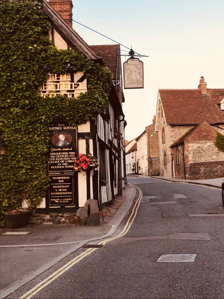 There are two double bedrooms, one with an en-suite and one bedroom with bunk beds. Plus our downstairs snug with pull out sofa bed. It is child friendly with the option of a stair gate if required. There is a cosy spacious lounge with wood burning stove and a kitchen which houses a dishwasher and washing machine. The pretty garden has a seating area, Greta climbing frame and lawn. There is a designated parking place under a two minute walk away. The cottage has been recently modernised to a high standard. The cottage is in the heart of Cobham on the picturesque village street. It is a few steps from the delightful village shop which is open daily and sells fresh bread and meats as well as local produce. There are 3 friendly and welcoming pubs within the village (all within easy walking distance of the cottage) offering local ale and food. Cobham is a very pretty village in a conservation area, and as such remains relatively unspoilt. The 13th century village church is 2 minutes walk away. Charles Dickens is also linked to the village mentioning The Leather Bottle Inn (one of the local pubs) in The Pickwick Papers. The pub houses a collection of Dickensian memorabilia. In the village we have a cricket pitch, football pitch, tennis courts and great play park. Cobham stands at the end of Lime Avenue that leads to the great Cobham Hall, one of the finest houses in Kent. The village is described as a walker’s paradise and from the cottage you can access many different walks in the most glorious countryside. A 30 minutes walk from the cottage through the Cobham Hall grounds, takes you to a National Trust Mausoleum and a 20 minute walk through beautiful countryside takes you to Owletts National Trust property. Cobham is also a short distance to the vibrant city of London. A direct train from the next village (5 minutes drive away) takes you into London Victoria in less than 50 minutes. The cottage is a 10 minute drive from Ebbsfleet International Station and a 50 minutes drive to the port of Dover. Wisteria Cottage offers a truly delightful cosy getaway, catering for all.